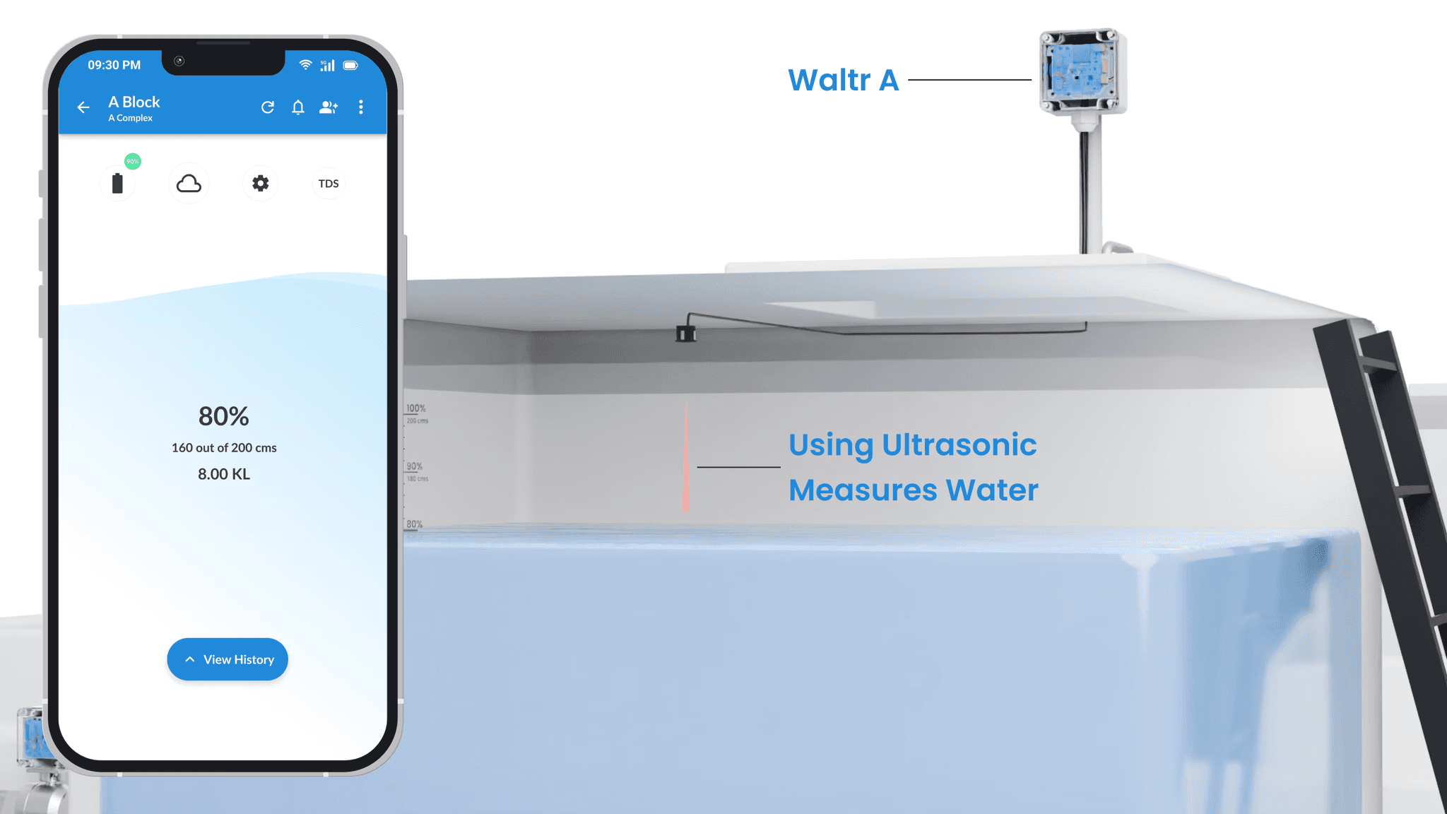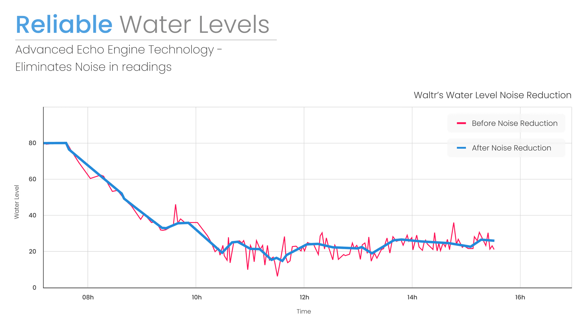 Waltr A filters out noise and interference from tank walls, pipes, or obstacles, ensuring precise and reliable water-level readings at all times.