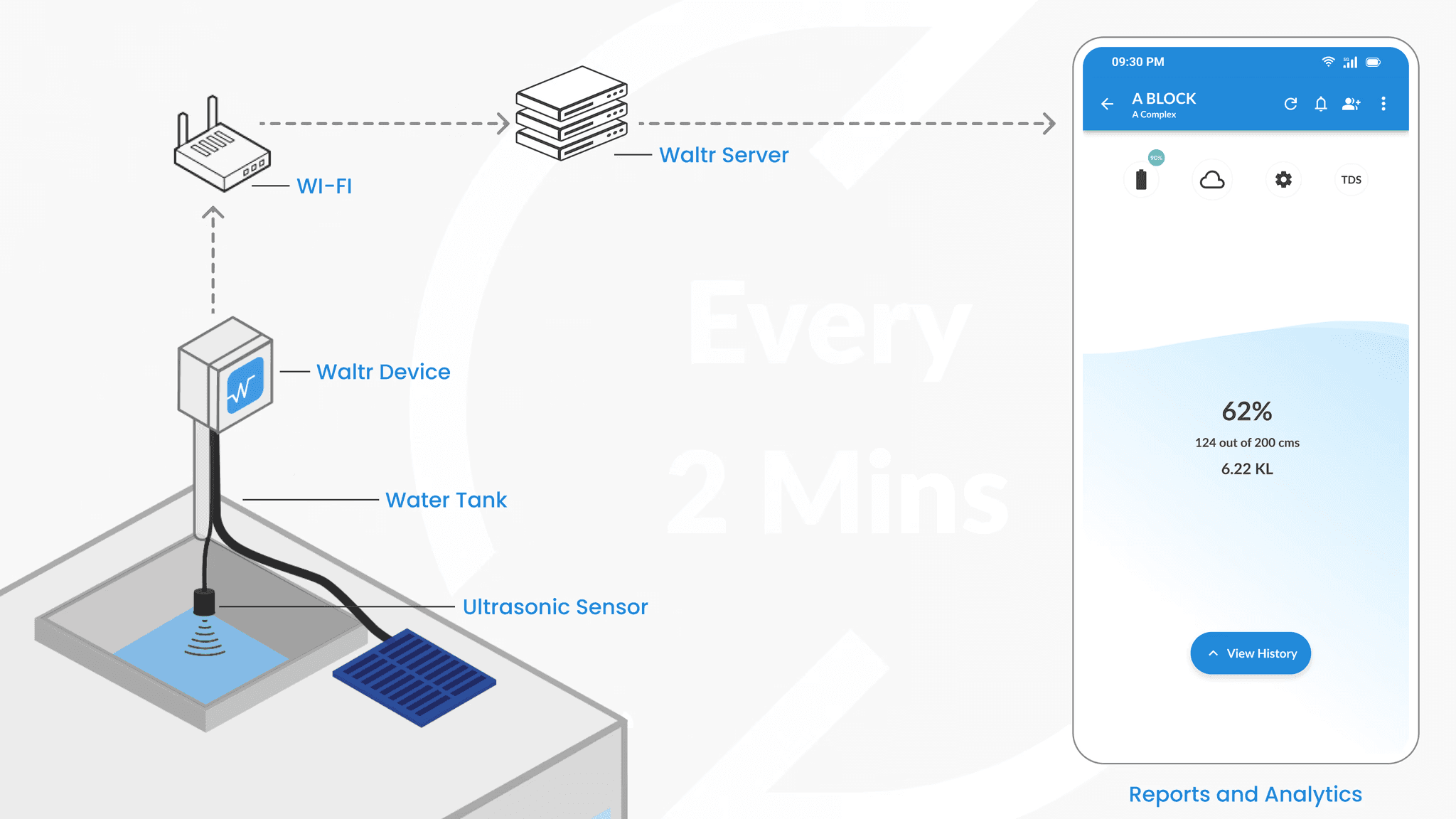 Real-Time Monitoring: Water levels are updated every few minutes and shown on the Waltr App for easy tracking.